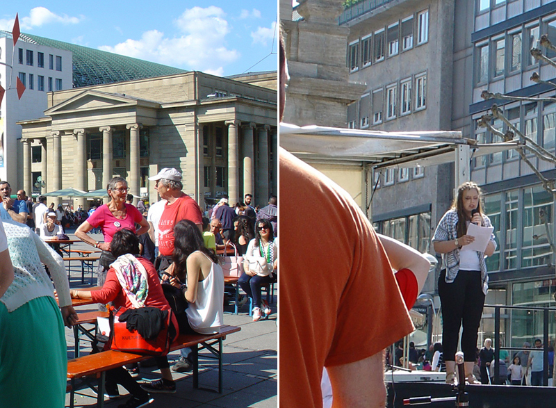 Die Redebeiträge beleuchteten viele unterschiedliche Aspekte rassistischer Unterdrückung und des Widerstands dagegen. Ein ausführlicher Bericht und weitere Fotos finden sich auf der facebook-Seite von Aufstehen gegen Rassismus Stuttgart unter facebook.com/AGRStuttgart