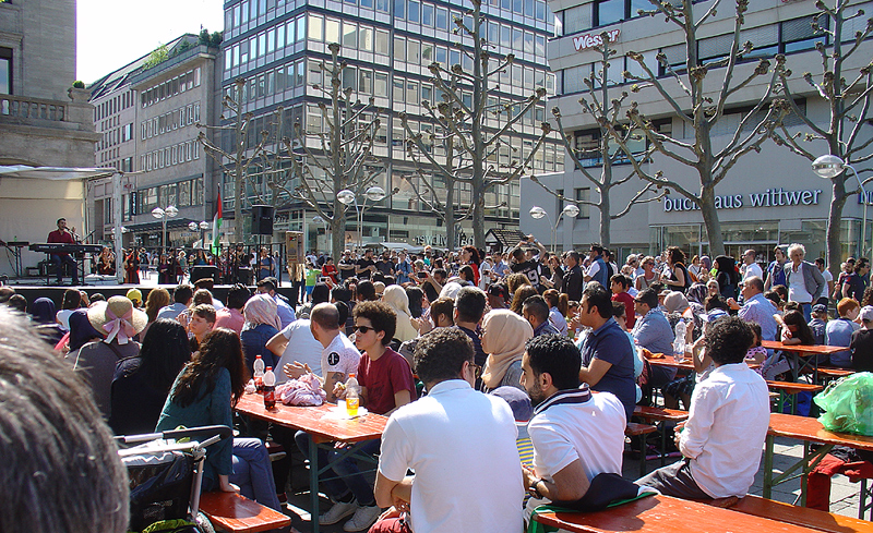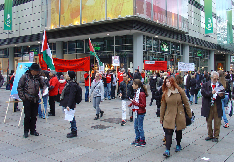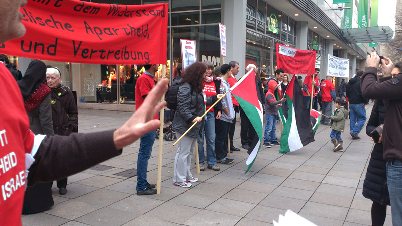 Unter blauem Himmel verlief unsere Kundgebung, die wir zusammen mit „Palästina spricht“ organisiert hatten diesmal sehr gut. Es wurden zahlreiche Reden gehalten und es gab kulturelle Beiträge.