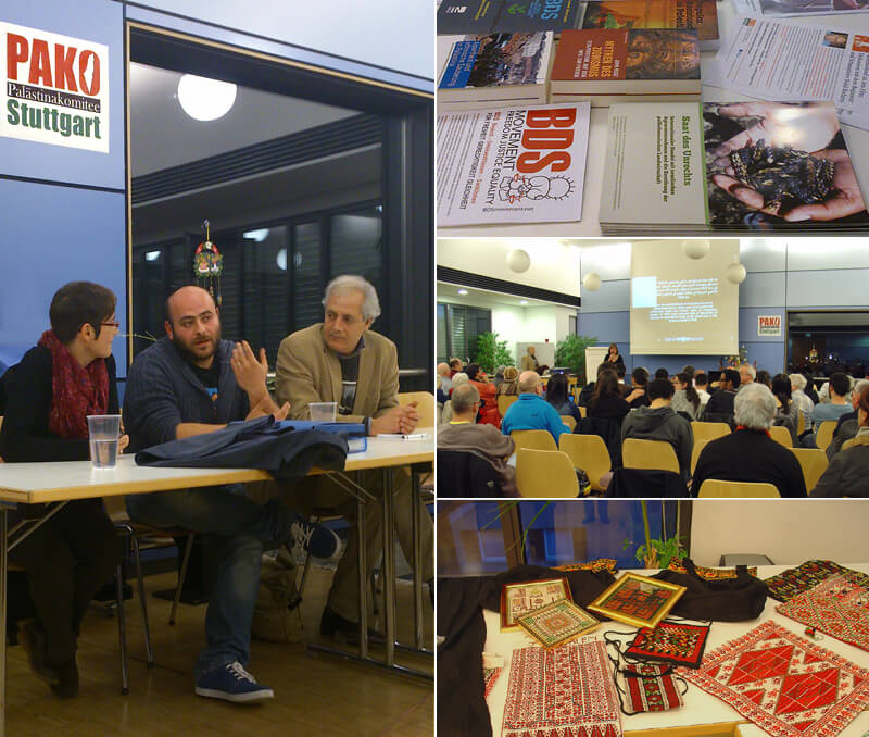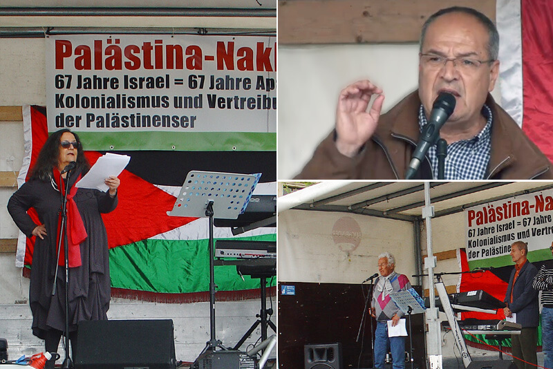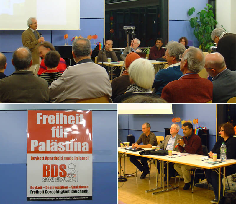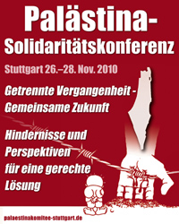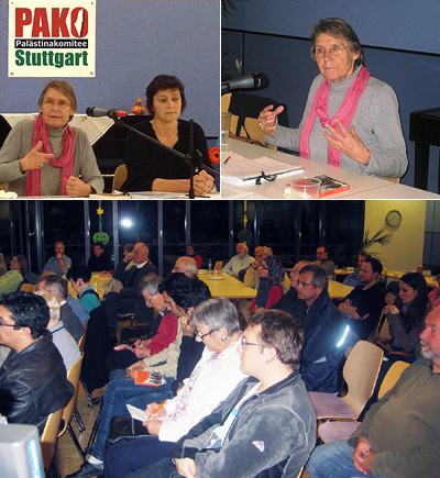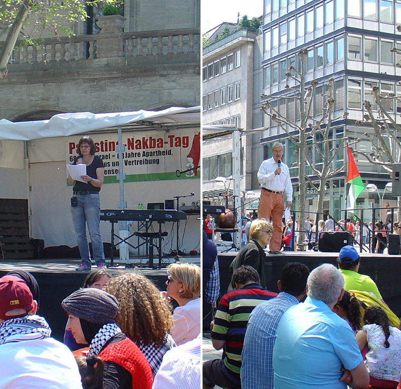 Reden wurden gehalten von Felicia Langer, Rania Madi (Badil-Schweiz), Samir Abed- Rabbo (USA), Alfred Niklaus v. Pax Christi, Flüchtlingskinder im Libanon, Partei Die Linke, Kultur des Friedens, GAM Stuttgart, Karl Schmidt (aktiv für die Überwendung der südafrikanischen Apartheid) von Ilan Pappe (England) wurde ein Grußwort gelesen...