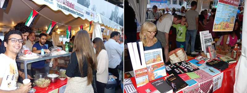Stand mit Handwerksprodukten aus Palästina, sowie Infomaterial und