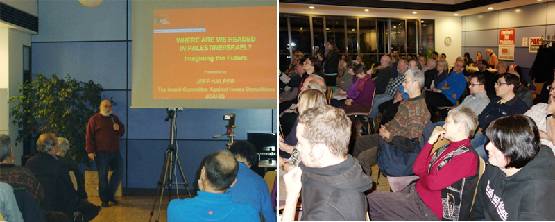 Mohammad Jaradat sprach über den zivilen Widerstand der palästinensischen Bevölkerung, über die immer größer werdenden Einschränkungen der Bewegungsfreiheit und die Farce, die die Oslo-Verhandlungen bedeutet. Er bat um Unterstützung der Boykott-Kampagne BDS und informierte über die Arbeit der Menschenrechtsorganisation Badil, deren Mitbegründer er war.