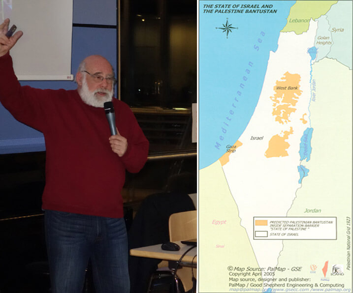 Denis Goldberg, Anti-Apartheid-Kämpfer, Bürgerrechtler und Autor aus Südafrika Denis Goldberg sieht klare Parallelen zwischen dem ehemaligen Apartheid-Regime in Südafrika und dem Staat Israel. In seinem Buch der Auftrag (auf der CD der engl. Ausgabe) schreibt er : "Die Gewalt des Apartheidregimes in SA war nichts im Vergleich mit der totalen Brutalität der israelischen Besatzung Palästinas. Ich meine das ganze Palästina, aus dem die palästinensischen Araber vertrieben wurden. Die größte Gewalt wird in den besetzten Gebieten der Westbank und im Gazastreifen gesehen." Ein Staat, oder zwei Staaten? Wo liegen die größten Möglichkeiten für eine gerechte und demokratische Lösung für Israel/Palästina? Veranstaltung mit Dr. Abed-Rabbo, Mitorganisator der One-State-Conference in Dallas, Texas Gerechter Frieden und Gleichheit statt Apartheid Veranstaltung mit der palästinensischen Bürgerrechtsaktivistin und Journalistin Rajaa Zoabi Omari (aus Haifa) von Abnaa elBalad in Stuttgart am 13.05.2011. Veranstaltung mit Hanin Zoabi am 06.04.2011 in Stuttgart Auf dem Weg zu einer tatsächlichen Demokratie: Über die Situation der PalästinenserInnen in Israel Hanin Zoabi kommt aus der arabischen Stadt Nazareth. Sie ist im Jahr 2009 als erste Frau auf der Liste einer arabischen Partei in das israelische Parlament, die Knesset, gewählt worden. Ziel ihrer Partei Balad oder „Nationales demokratisches Bündnis“, zu deren Gründer der bekannte palästinensische Politiker und Philosoph Azmi Bishara gehört, ist die Verwirklichung der Rechte der Palästinenserinnen und Palästinenser in einer tatsächlichen Demokratie.