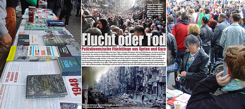 Reden wurden gehalten von Felicia Langer, Rania Madi (Badil-Schweiz), Samir Abed- Rabbo (USA), Alfred Niklaus v. Pax Christi, Flüchtlingskinder im Libanon, Partei Die Linke, Kultur des Friedens, GAM Stuttgart, Karl Schmidt (aktiv für die Überwendung der südafrikanischen Apartheid) von Ilan Pappe (England) wurde ein Grußwort gelesen...